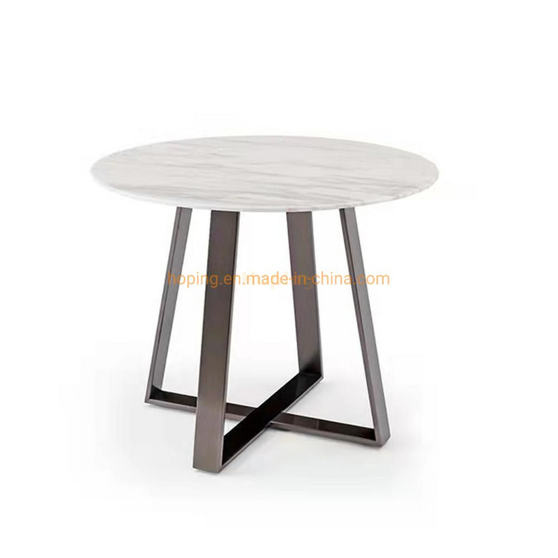 Newly Designed Simple Round Side Table Tea Table Coffee Table Corner Table with Marble Top and Carbon Steel Cross Shape Four Legs Home Furniture Hotel Furniture