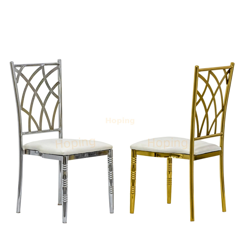 Hot Sale Square Hollow Back Wholesale Party Gold Metal Iron Steel Chairs for Wedding Banquet Hotel Event